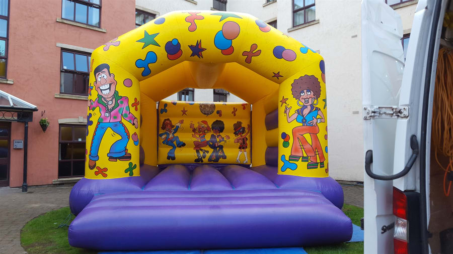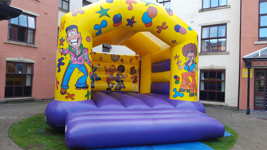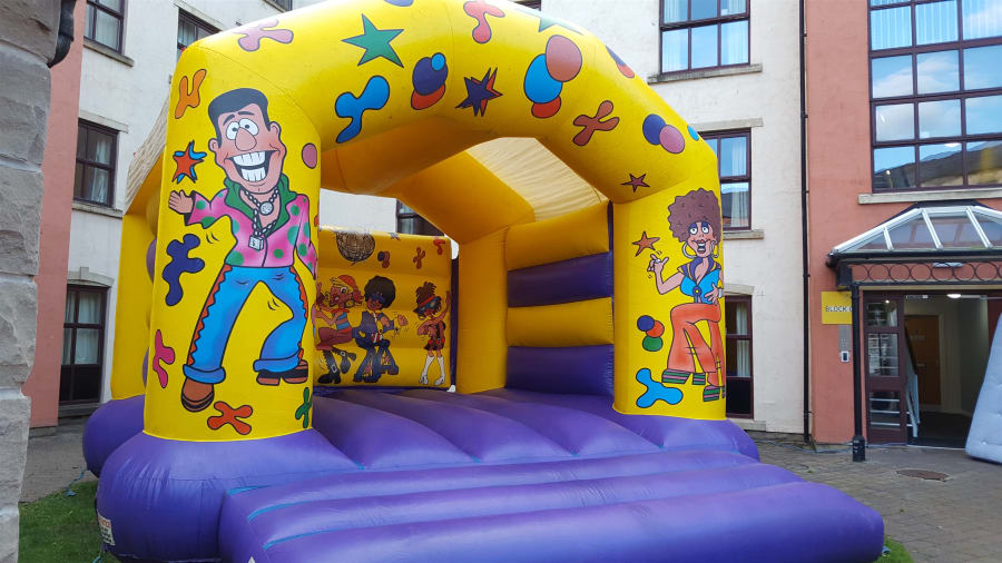 This adult bouncy castle features bright, bold characters jiving and dancing and is perfect for any occasion! Our castle stock is refreshed frequently so our castles always look brand new, and like all of our other inflatables. It’s available overnight on request, in case your party goes into the wee small hours – for more details just get in touch. Overnight bookings need to be in a safe, secure location.